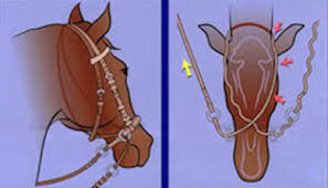 The Bitless Bridle works on an entirely different concept from all other types of bridles. A bitted bridle enables the rider to communicate by applying pressure on the exquisitely sensitive mouth. The traditional bitless bridles (i.e., the Hackamores, bosals and sidepulls) work primarily through pressure on the nose. All these methods, the bit method and the traditional bitless methods, are potentially painful. The Bitless Bridle™, on the other hand, allows the rider to communicate by painless pressure that is distributed around the whole of the head. Whereas a bit often applies harsh pressure to the mouth, over a small area, The Bitless Bridle™ distributes its gentle pressure to far less sensitive tissues and distributes even this amount of pressure over a wide area. It does this through two loops, one over the poll and one over the nose. Essentially, it gives the rider an inoffensive and benevolent method of communication by applying a nudge to one half of the head (for steering) or a hug to the whole of the head (for stopping). Because The Bitless Bridle™ exerts minimal pressure and spreads this over a large and less critical area, it is more humane than a bit. It provides better communication, promotes a true partnership between horse and rider, and does not interfere with either breathing or striding. As a result, performance is improved.
